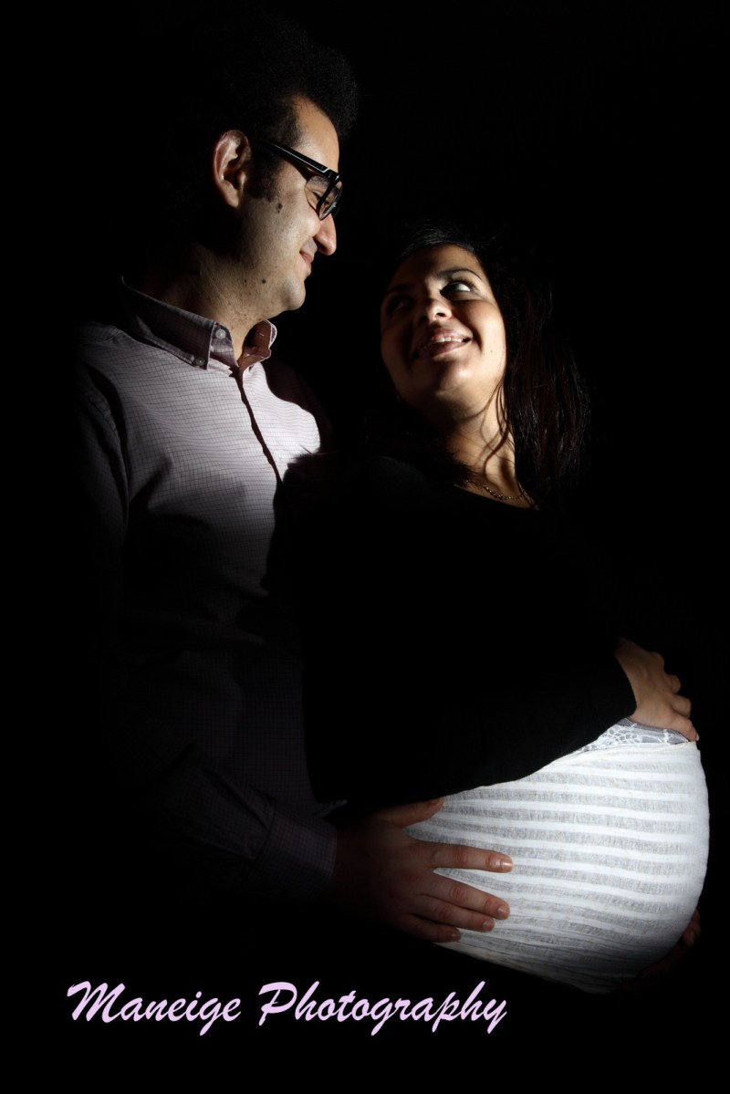 Ce cliché est tip-top! Les lumières sont placées au bon endreoit et font ressortir le plus important: les visages du couple ainsi que l’heureux évènement à venir. Belle complicité dans le regard. Réponse